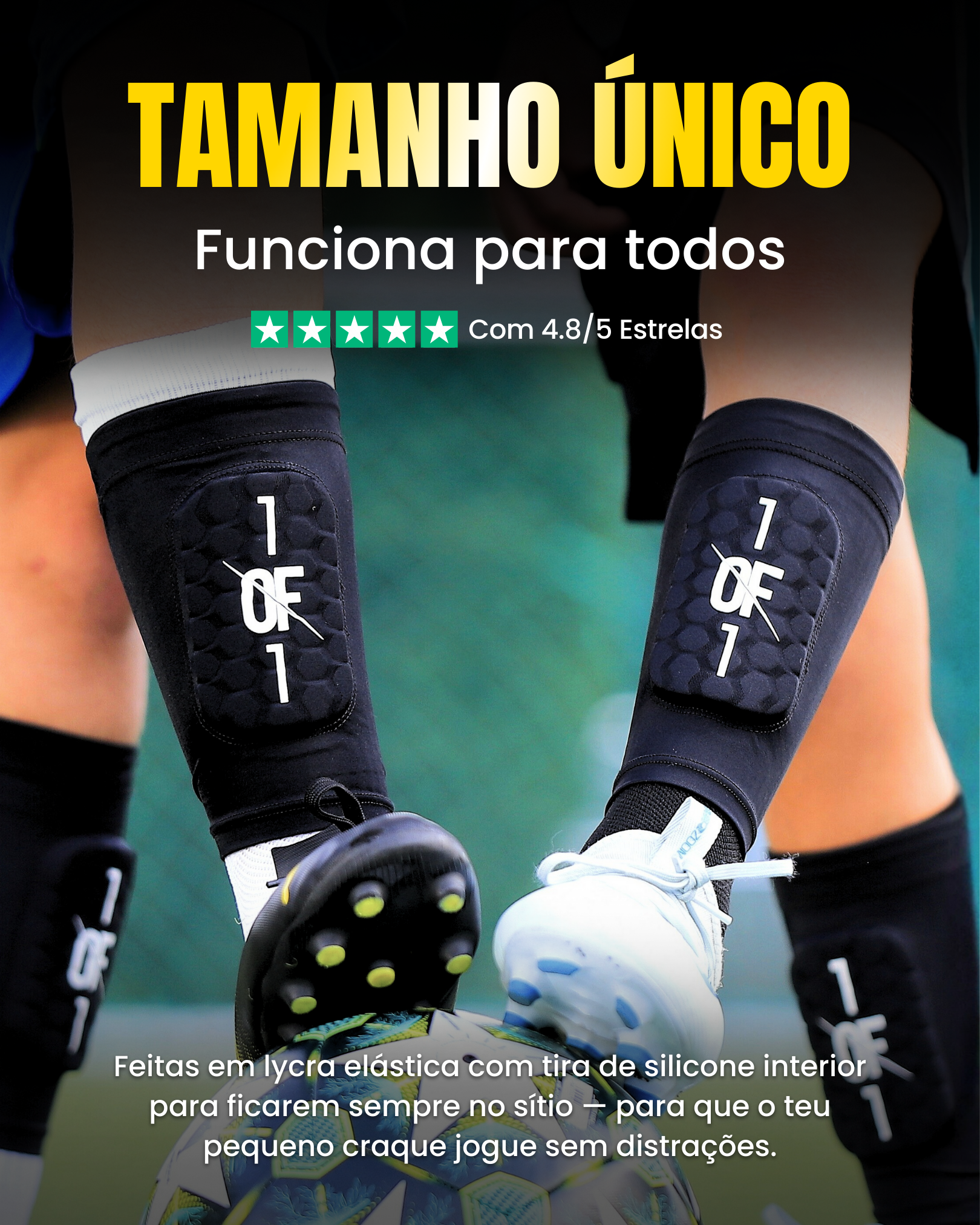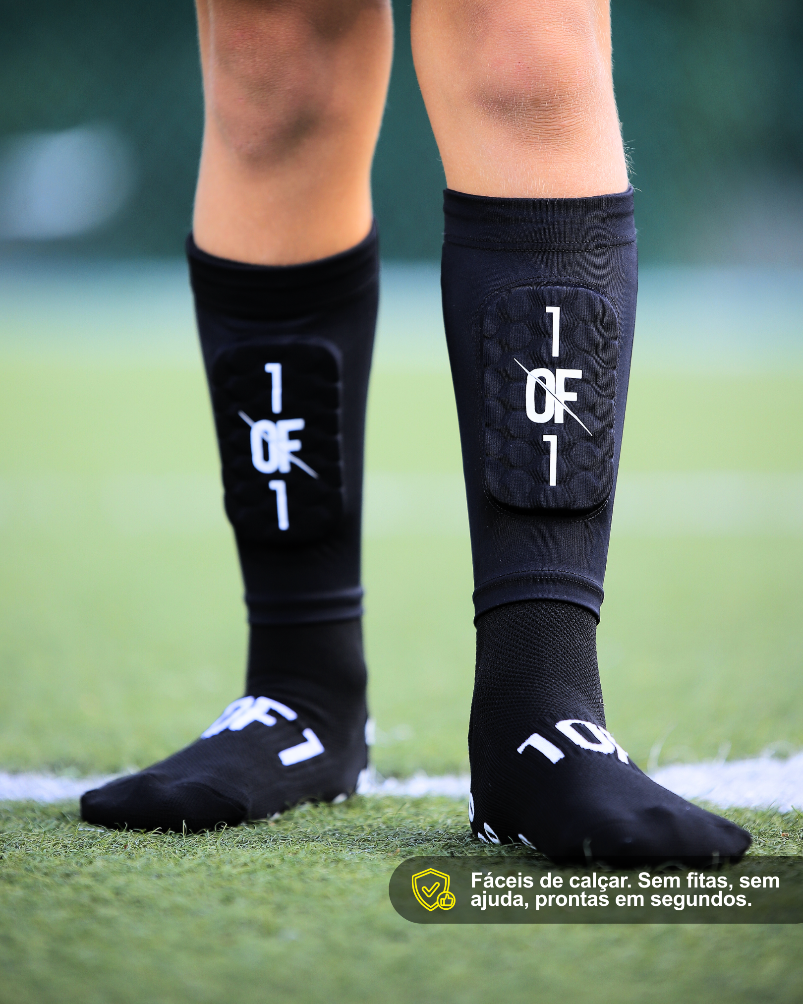 Equipadas con una banda anti-deslizante, las Caneleiras 1OF1 se mantienen en su lugar durante todo el juego, manteniéndote concentrado en el juego hasta el final.